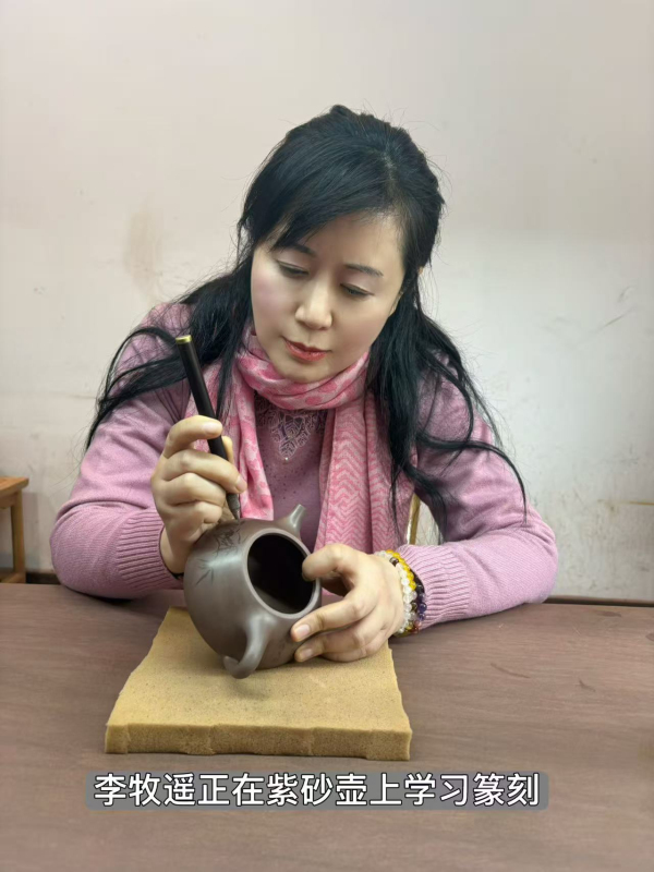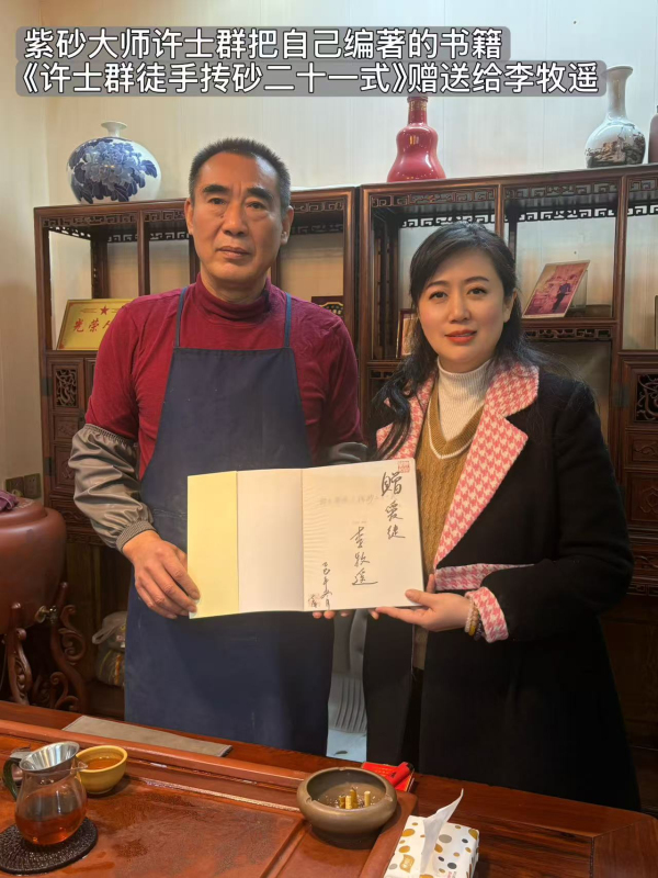 李牧遥表示,自己多年来深耕东西方艺术融合,始终对紫砂这门“指尖上的非遗”心怀敬畏,此次拜师旨在系统学习传统紫砂技艺,未来将尝试把绘画中的构图美学与文学中的意境表达融入壶艺创作,为非遗传承注入新活力。