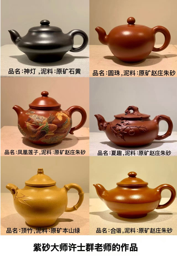 许士群大师1963年生于宜兴丁蜀紫砂世家,从事紫砂艺术创作近四十载,深耕纯手工制壶技艺,尤其在“泥料之王”朱泥的研发与创作上自成一派,作品以“古朴酣醇、形神兼备”著称,其代表作“君祥”壶将君子之风与传统礼序融入器型,被誉为朱泥紫砂中的上乘佳作。作为国家非遗传承先锋模范人物,许大师始终坚守“追传统、求独特”的创作理念,系统钻研紫砂矿料特性与成型工艺,形成了兼具文化内涵与实用价值的艺术风格,深受海内外藏家推崇。