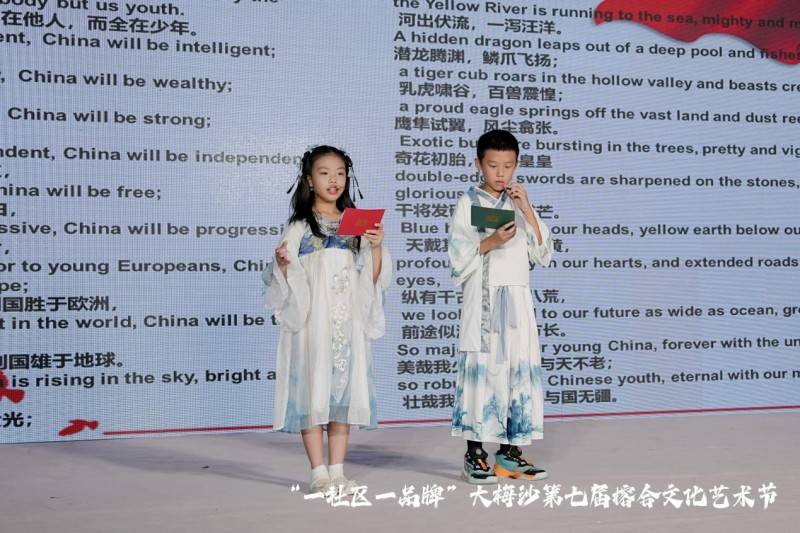 更值得称道的是,本届榕合文化艺术节涌现出强烈的“破圈”意识,多个节目大胆进行文化混搭与跨界融合。如小几里英语绘本馆推出的《盐田鱼灯舞》英语演讲、《中国少年说》双语朗诵,用国际语言讲述在地非遗,让人眼前一亮。